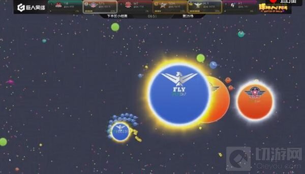 FLY遇到了STS,FLY开始分身吃掉了STS一部分分身,STS迅速的合球导致自己的没有被FLY全部收,但是STS遇到了TB在帮TB吃掉了之后,又遇到了FLY,FLY分身压住STS之后运用体重优势直接吃掉了STS。