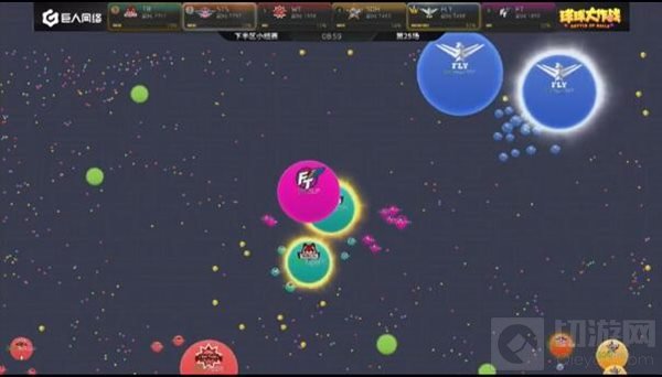 另一边,FLY运用自己的体积优势开始横扫全场,随后遇到了SOH吃掉了STS,FLY在和SOH一番对峙之后直接壁咚吃掉了SOH。开始了霸屏模式,碾压全场。