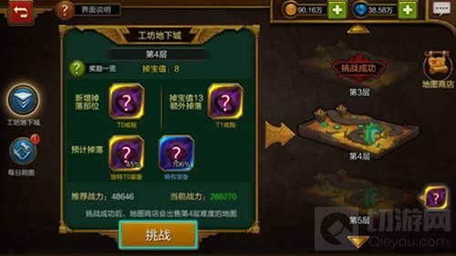 原版的地图工厂也被搬进了手机版,副本和隐藏区域没法满足你的时候,游戏中还提供了工坊地下城模式。你可以把工坊地下城理解成暗黑的“秘境”,这个模式里,地形是随机的,随着进程深入,地下城越深,随机刷出的敌人会越强力,产出的装备也就越好——合成地图本身的品质也影响了装备掉落。