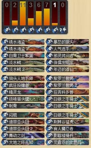 分裂软泥怪、鱼人猎潮者、剃刀猎手、机械幼龙技师、白银之手骑士:我把这些也放到一起来点评,他们的特点都是能够衍生一个生物出来,配合上面提到的buff随从和盗贼的英雄技能可以有效的解场并且战场,小鬼召唤师除外,身材太差,不好用。(这些卡不是看见就捉,除去其他优秀身材的随从,才捉这些)