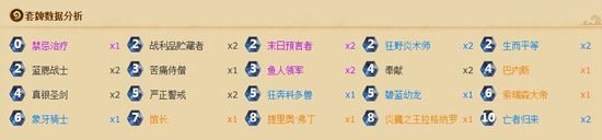 这套牌与传统死鱼骑略有区别,除了加入了巴内斯、象牙骑士和馆长等新卡之外,也没带慢速骑士的软解标配——奥尔多卫士,但是带了两张战利品作为前期的曲线补充以及过牌,在面对快攻职业时前期过度会更舒服。这套牌随从除了巴内斯共有18张,其中只有科多、象牙骑士和馆长三张牌被复制出来时是纯粹的白板,其它的都能发挥效果或者打出一些配合。