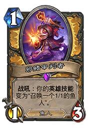 邪鳞审判者:这张鱼人牌是这套牌的核心,比较关键,1费能找到是很好的起手,其他时间抓到也尽量早些上场。管理员们能buff到的鱼人只有这两只和改变后的英雄技能召唤出来的鱼人。当然,你也可以从宝石甲虫里发现鱼人领军来buff这些鱼人。
