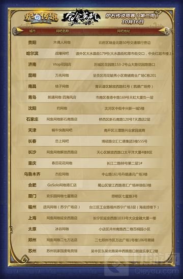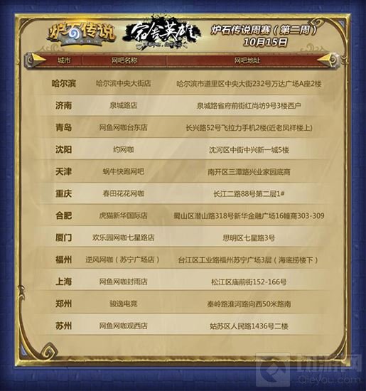 本周末宿舍英雄会在多个城市同时开赛,以下为每个城市的详细比赛地址。