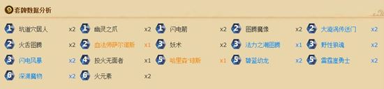 目前最热门的中速萨已经舍弃了被削弱的石化武器和海象人,但是站场和控制力依旧很强,在保持一定场面后,就可以利用嗜血、雷霆崖勇士等卡牌扩大优势从而赢得胜利。中速萨依然有爪子、穴居人和图腾魔像等强力起手,闪电箭代替了石化武器,还拥有闪电风暴和传送门4张AOE来 清理场面。