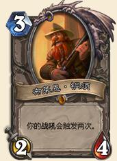 总之,1费的布莱恩·铜须的用途非常广泛,也非常灵活。无论是和大地之环祭司配合回血还是配合克恩苏信徒进行BUFF都是不错的选择。