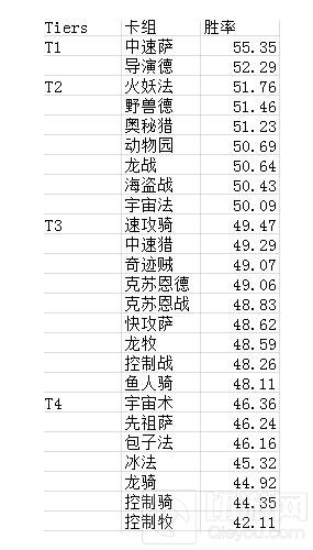 6.四个“劣等职业”,术士,盗贼,牧师,骑士在平衡性改动后热度有所上升。这些职业的很多卡组都被毁灭之锤和兽群呼唤压得喘不过气来,现在这些职业再次获得了机会。以宇宙术为例,它的数量在过去一周翻了一番。奇迹贼和鱼人骑的数量上升了50%。