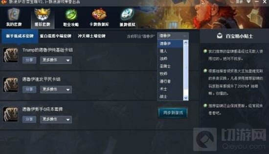 提供职业选择,卡牌数值推荐、卡组曲线、构成卡牌类型,简直狂拽炫酷的不行!