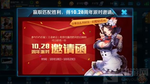 2. 活动期间,玩家在游戏内参与排位赛和5V5匹配(仅限王者峡谷和王者峡谷迷雾模式),对局胜利后,在结算面板处可获得周年派对邀请函的分享资格,每个账号每天只能获得一次哦;