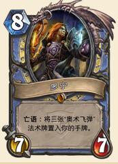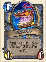 卡拉赞全新加入的卡牌。灵活性高到不行的1随从卡。法师的1费随从并不多,不少法师在之前的版本中会采取1费拍浮龙的打法。当然,浮龙能够撑下来,会变成一条大龙。