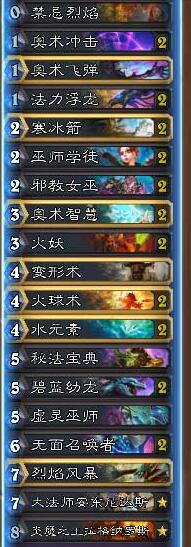 一般来说,你起手要留低费随从和法术,随从方面法力浮龙、巫师学徒、邪教女巫都可以留,法术方面主要流寒冰箭和奥术冲击,当然具体还是要根据对手职业进行判断。