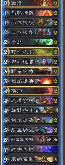 虽然大萌德没有了树人,但咆哮体系不是还有一半嘛,这套野兽德在旧版的基础上加入了几张新卡,增强了过牌和站场能力,实战效果还不错。