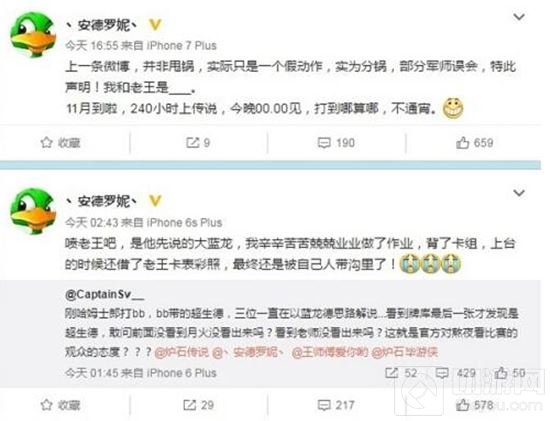 10月31日凌晨三点,会长发微博称他将解说中的超生德看成了蓝龙德,于是炉石圈就开始了一场血雨腥风,大家将矛头指向主播之前不做功课,不背卡表,对这次的嘉年华不够重视。