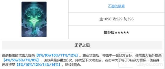 - 无界之思使装备者的攻击力提高【8%/9%/10%/11%/12%】。