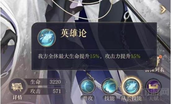 羁绊:队伍中无人阵亡时,提升我方全体20%攻击力(2星解锁)。