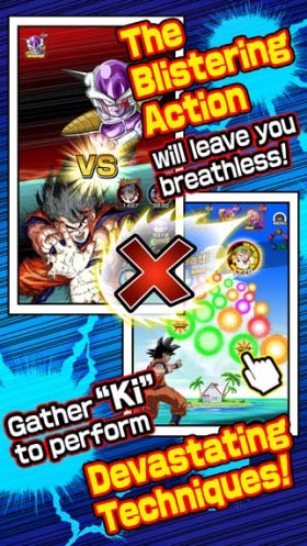 《龙珠Z:爆裂对战(Dragon Ball Z:Dokkan Battle)》中玩家所做的就是集“气”发招,也就是说玩家必须快速点击屏幕中的“气”来进行充满速度感的战斗,而且游戏中玩家可以自行组队,在组队过程中你可以看到许多经典人物都会出现,在玩法上,本作一半偏向无脑动作,一半偏向益智策略,两者的结合相信会给玩家带来有趣的体验。