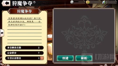 最多可4人组队挑战其他公会玩家的狩魔队伍,根据战斗时长和战损计算积分,每日每人限制参与次数