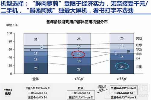 “鲜肉萝莉”受限于经历能力,大多选择千元机和父母使用剩下的二手机。而“蜀黍阿姨”特别青睐于大屏手机,出于视力、舒适度等方面的考虑,大屏手机看小说、视频、打字更方便。