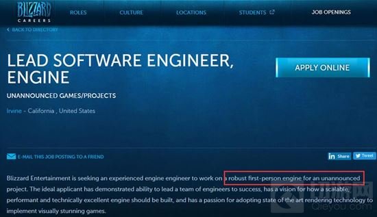 大家好,我是小编绝世小侠,今天小编为大家带来了暴雪爸爸的相关推送,近期,暴雪官方的一则招聘启事引发了玩家的关注,该启事是招聘第一人称游戏的高级软件工程师,这里的游戏指的并非是《守望先锋》,而是一款全新的第一人称游戏,这究竟款什么游戏呢,让我们一起到文章中来看看暴雪推第一人称游戏的具体详情。