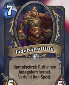 萨满 战吼:召唤一个青玉魔像,并给它(魔像)嘲讽英文的文字描述是“Summon a Jade Golem. Give it Taunt.”根据语法原则,后面的it指的是前文中的青玉魔像,并不是青玉酋长本身。此条规律也可参照厄运召唤者。