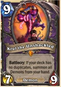 战吼:如果你的牌库中没有重复的牌,则召唤手中所有的恶魔