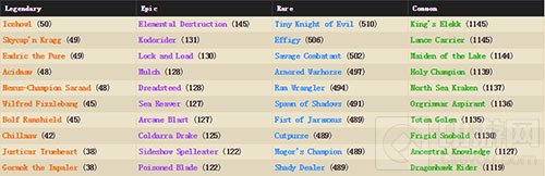 小鬼骑士,轮回,狂野争斗者,重甲战马,暴怒牧羊人,暗影子嗣,加拉克苏斯之拳,窃贼,穆戈尔的勇士,走私商人
