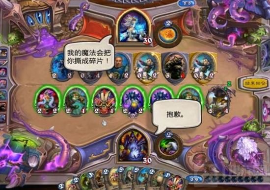 本来是这么打算的,大帝减费,骑士苟疲劳到打空牌库,在自己的血7点以下的时候打出熔核巨人,郭雅夫人将巨人放回牌库,再打出元气弹,100%25点。无奈暴雪编程员设定在牌库无随从的时候打不出这个配合,太伤心了。