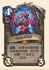 作为666身材,至少补充1张恶魔手牌,而且包括大王,伊利丹,766地狱火这些质量恶魔,这张牌我觉得不论是宇宙术还是大王术都会带上1-2张作为补充整个卡组质量的选择。这样来看给了979白板也还是凑合的如果侥幸多活了几个回合,还能帮你把别的恶魔一起用出去(当然拉大王的风险还是在的)这样看来这张恶魔是不是不那么弱了呢~