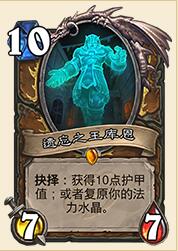 小德再一次延续了其高费橙卡的传统,不过这张10费卡强的有些变态了,复原水晶,等于到了10费免费稳定上了一个7-7,比起不够稳定的奥术巨人来说无疑强力的好多,不过还不止如此。想想小德的AV娜,9费上AV娜加库恩,有10费可用而且随从都是1费,可以说怎么玩都可以,当然,前提是能够活到那个时候,又有手牌,不过对于跳费德来说,后期更有保证了,前期损点血没什么,10费就能要你好看。至于加10点护甲的抉择,估计很少人会用到吧。