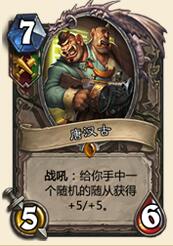 污手党老大,只有战骑猎可用。污手党老大就是不一样,手下都是+1+1,他直接就来个+5+5,,身材略亏,不过可以裸上,对比王者祝福和恶魔之心,+5+5的特效约价值4.5费,本身5-6身材也值5费,虽然是随机BUFF,不过也算比较超模的卡牌。