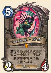 看起来5费这2-4的身材太过弱小,不过鱼人体系从经典卡包到现在经过不断扩充,已经很丰富了,能拉两个鱼人上场,如果其中有鱼人领军一定能赚不少节奏。现在环境来看,比较适合死鱼骑,能够尽快让领军和冲锋鱼上场,不过有可能在斩杀的时候有可能污染鱼池降低斩杀点。新版本环境下鱼人很可能会有一些新的套路,不过挖宝挖出来几乎毫无作用。