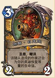骑士职业卡。请先忽略掉那火车进涵洞的原画吧,单从特效来看,3费2-2有嘲讽有圣盾,可以帮助抵挡两次攻击,对比吵吵机器人、潜行圣盾人,还是满符合标准的。回血效果就当是附赠的吧,只要不碰到牧师,回个2血或者4血还是可以期望的。现在来看,骑士职业卡中3费卡牌除了奥尔多也没有什么特别好的,这卡应该可以在骑士卡组中有一席之地。