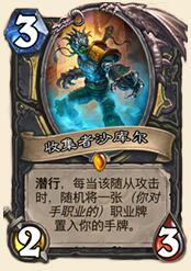 盗贼职业卡。又是偷职业卡的套路,看来暴雪一定要让潜行者当个贼啊。身材亏了1/1,不被不名AOE扫死的话,潜行特性保证了其能拿到一张牌,如果场面较优,还有可能拿到更多的牌或者让对手花大力气解掉他。不过偷牌体系已经在当前版本证明了并不强力,随机性太大,因此这卡只能算中规中矩。