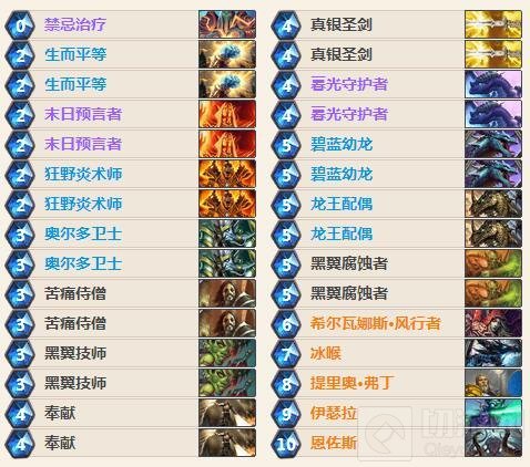 这套牌对阵打脸萨也有不错的胜率,别看奶量是少些的,只要保证前期有末日/夜魇/城管之一,一般就能顺利过渡,更别提炎术士生平奉献等强大的返场。我们这套的墙很多,可以保证自身存活。