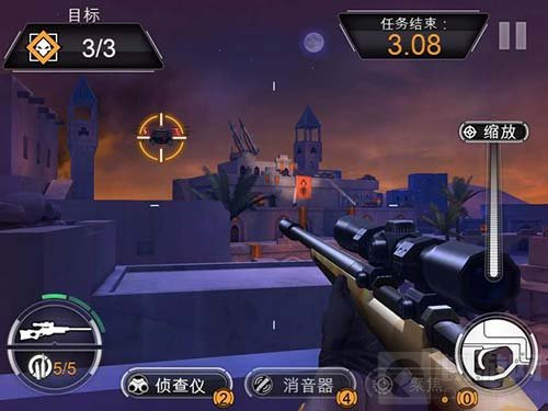 游戏的玩法非常简单,主要以完成各种任务目标为主,其中包括一枪爆头、消灭无人机、散弹枪和冲锋枪专属任务等,让玩家在逼真的枪林弹雨中,真实体验到刺激的射击快感。目前一共有六大战役等着玩家来挑战,而玩家需要消灭前一战役中的所有悬赏目标才能解锁,不过每一个战役的解锁难度相对较高。