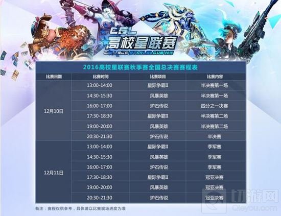 2016高校星联赛秋季赛全国总决赛将于12月10日-11日在广东工业大学体育馆震撼上演,从全国高校选手中脱颖而出的《炉石传说》8强选手、《星际争霸II》4强选手、《风暴英雄》4强战队,将在此争夺CSL秋季赛冠军的头衔,一起来见证高校冠军的诞生!