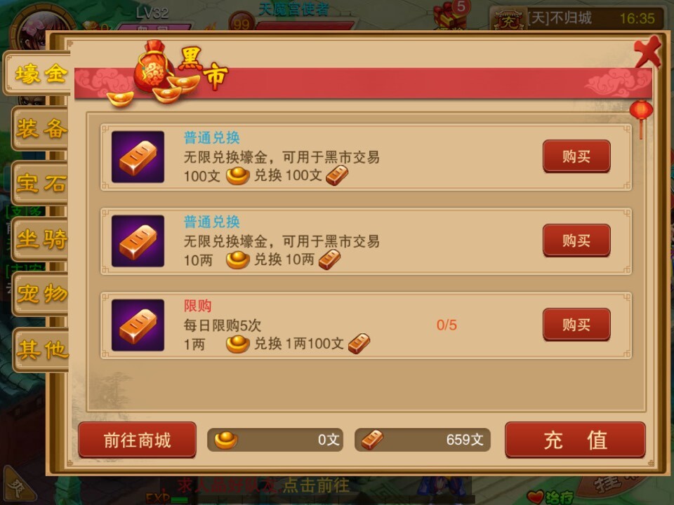 其次,本作独有的特色交易系统“黑市”,该系统不需要玩家VIP达到几级这种不平等的条件。只要是游戏中提升战力的道具,哪怕是橙色传说等级,你也可以交易。而“黑市”内使用的货币,玩家在游戏过程也能轻松获得。“黑市”内物品价格波动犹如股票,你不仅能低价买进物品自用,还能高价卖出赚取差价,做一名商人,因此非R玩家也可以玩得过瘾。