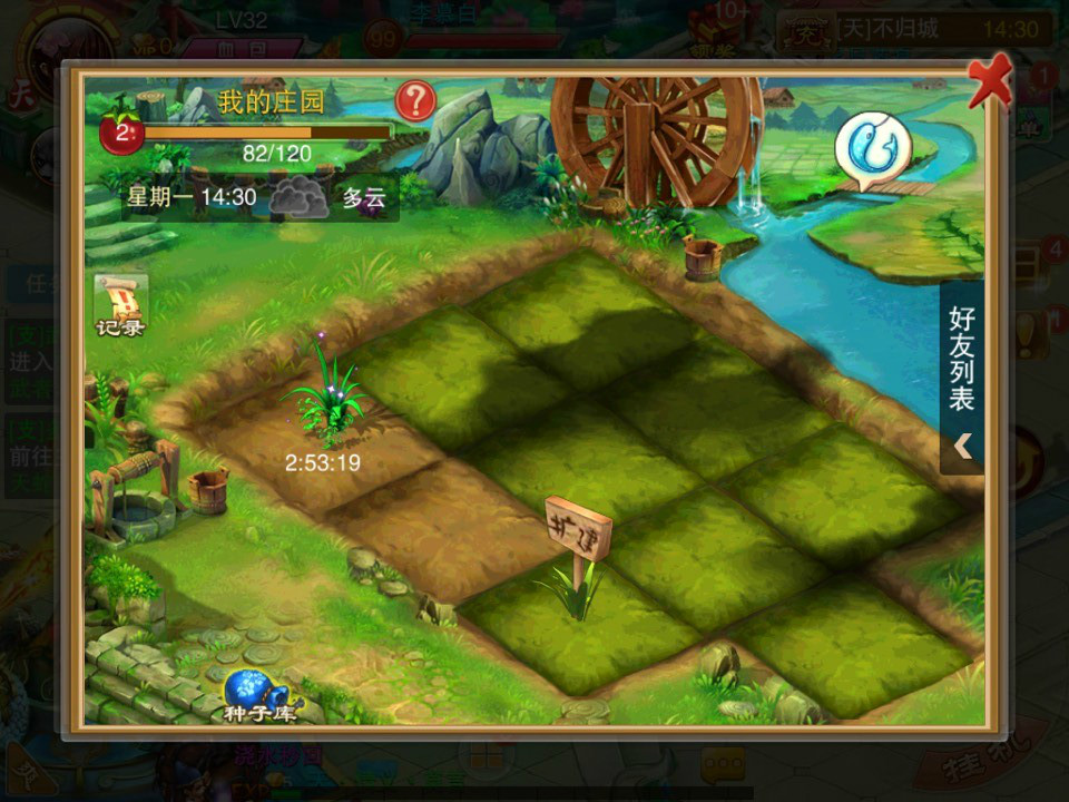闯荡江湖太久,是不是会感到很疲惫呢?没关系,该游戏中,有一个地方在你累了的时候是一个很好的“归宿”,它便是——庄园系统。在该系统中,种种菜,钓钓鱼,是不是你们所想要的田园生活?轻轻松松播种,然后获取经验以及银两,也是一个很好的升级赚钱之道啊。