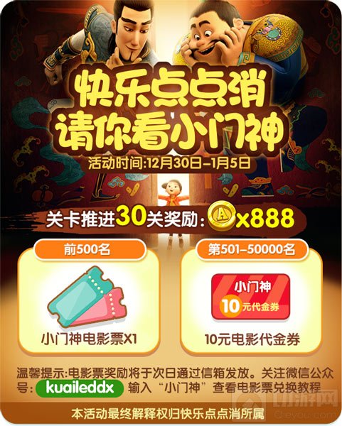 庆贺《快乐点点消》全平台上线,四大福利活动助力玩家享好礼。元旦登陆送钻石、充值任意金额送限量礼包、单笔充值金额达30元再送100钻石、闯关竞速更有《小门神》电影票、电影代金券及丰厚金币相送,带你游戏带你飞。