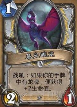 暮光雏龙:不错的单卡,不过我认为可以从这里腾出一个卡位给我们的核弹combo,这个随从基本只有在第一回合才能发挥他的实力,之后基本都是留在手里当龙的发动机了,综上考虑我决定从传统龙牧中剔除一张只带一张,前期摸到依然可以压场,后面摸到就安心当龙牌发动机。