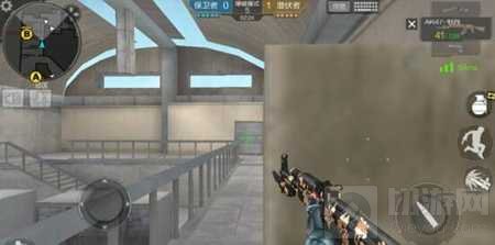 选择右侧这个位置的目的主要是为了协防中路,因为敌方玩家通过这条走道不仅可以直接进攻到己方的A点,而且可以突击中路。但是走道比较窄,所以进攻的风险比较高,很有可能会有敌方玩家在此蹲守,所以进攻的时候千万不要过于盲目。在走道中间有一处障碍物,你可以先在此处蹲守一下,若有敌方玩家出现在你视野之中,先不要急着上前攻击,最好贴着墙角移动到窗口的位置,借此来拉近你和敌方玩家的距离,进而将敌方快速击杀。
