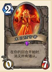 末日:关键卡。打快攻清场、打中速抢先手。对阵萨满、战士时,两费准时入场,一般情况下都解不掉,可以缓解场面压力,为自己赢得更多的时间。打中速,在关键费用时入场,可以压制住对方的铺场,尤其是与高质量生物或者墙同时入场,逼对面要么全解光要么不解让先手。此举要卖一到两张牌,但是能为自己赢得先手,在场面或者节奏劣势时,是翻盘的关键手段。