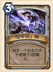 留牌就以四费生物为主,六费生物为辅,可留暗影箭和爆晶药水防止双激活搞事。铺场后就自由发挥,注意防横扫,贪一两个怪的生存结果都是低血量没有必要,该换的要换,保两个高血量的随从比三个低血量的随从要好得多。