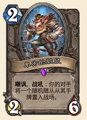 脏鼠:打快攻利器,有当年328的神勇,2费准时入场能让对面非常头疼。唯一要注意的是,对面是萨满小心拉出477。(不要问我为什么知道的。) 当中期的时候快攻没牌的时候,脏鼠才能发挥出真正的作用