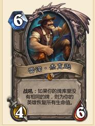 铜须:非关键卡,但是有扩大优势的能力。打快攻3费裸下相当于一个嘲讽,7费配合卡扎库斯和暮光龙非常强力,10费配合渊狱惩击者(我喜欢叫大地狱火)可以全场打6。打内战或者法师,在对面用末日压场时,配合脏鼠拉出对面手牌,往往会有惊喜。