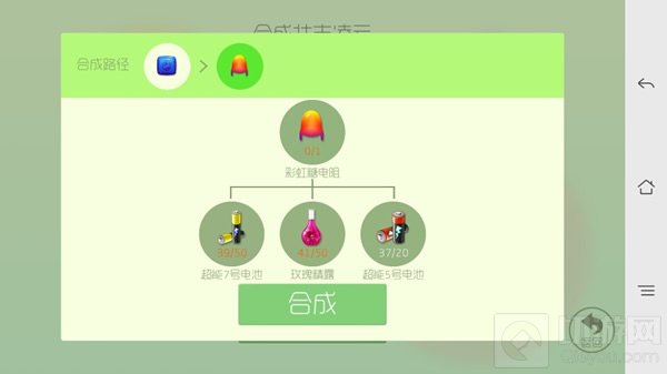 合成材料分别为需要50个超能七号电池,50个玫瑰精露,20个超能5号电池。