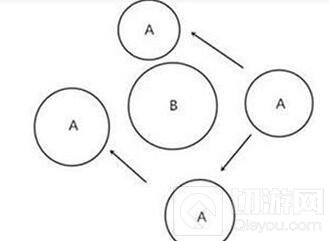 第一步:如上图,我方A需要吃掉敌方,个人模式下如果使用四分直线秒合会直接把你的合作队友吃了,此时可以利用旋转分身的方法,来实现加速移动靠近敌方。