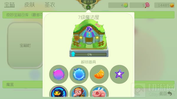 魔法屋共有8个等级,每个等级会解锁对应的皮肤、孢子等道具。