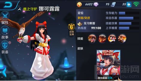 首先我们看一下娜可露露一技能和被动技能的介绍,首先要知道娜可露露的被动技能是娜可露露仅能命中敌人之后会附加攻击,一定是命中敌人之后的状态下攻击敌人提高伤害,然后我们再来看一下主要输出的一技能,一技能就是施放标记,敌人受到飞鹰的伤害后,首先娜可露露的被动技能就触发了,下一次攻击提高攻击力,然后在对方有标记的状态下攻击敌人,敌人会受到10%的魔法伤害,并且减少一技能3秒的冷却时间。