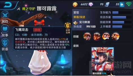一般娜可露露的技能连招都是飞鹰+突进+普通攻击!!!然后打出来的伤害就算是坦克也受不了,所以娜可露露的主要表现还是在标记后打出来的最大生命值10%的魔法伤害。