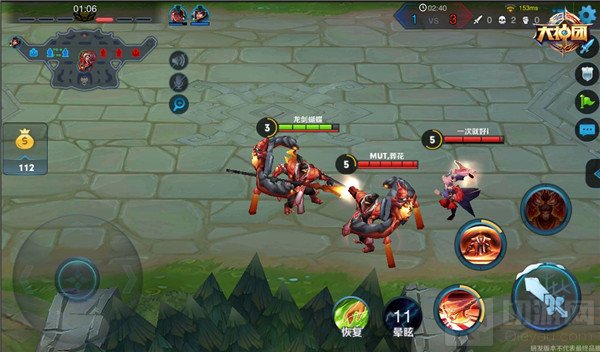 3V3的地图的魅力在于其惊心动魄的团战,团战往往是能左右比赛成败的关键。在团战中,张飞处于前排的坦克位置,其技能可以对友军产生较大增幅,所以前期持续的释放守护机关技能为友军增加护盾,当怒气满了后释放大招再次团控敌人大范围单位,并且变身为自己附加巨额护盾,吸收大量伤害,为友军创造更多的输出机会。